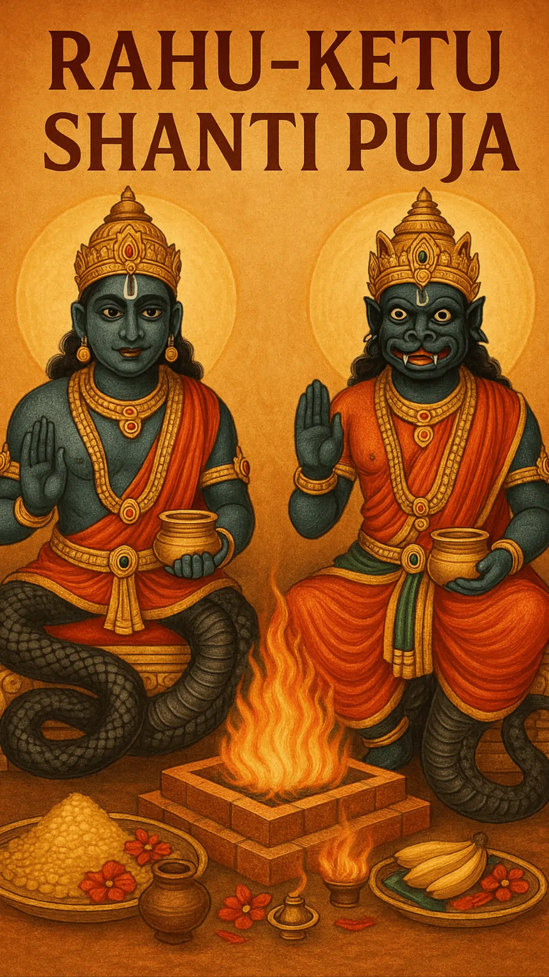 Rahu Ketu Shanti Puja is a sacred Vedic ritual to appease these planets, reduce their malefic effects, and bring peace, prosperity, and spiritual balance.
