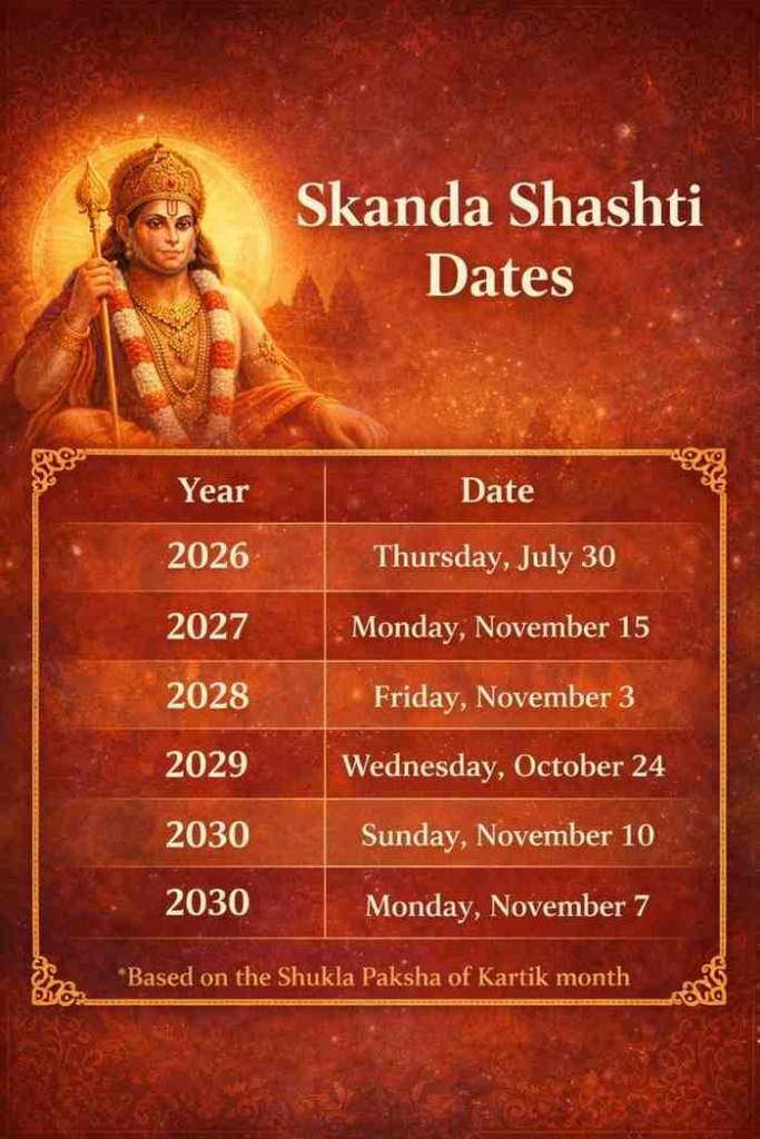 Dates for Skanda Shashti in 2026